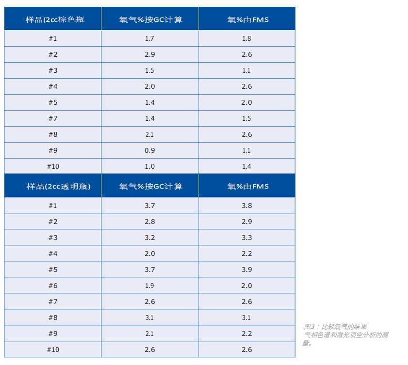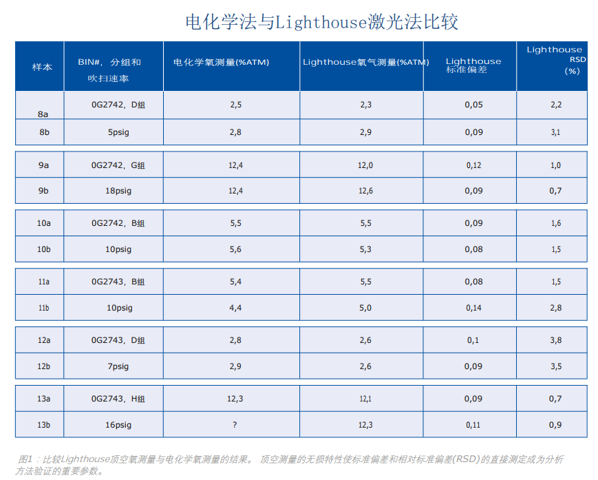 激光顶空氧分析和其他方法比较研究